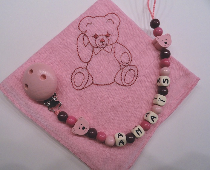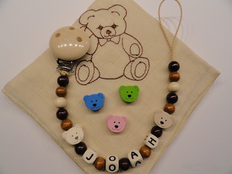 1 Nuggikette mit 2 Motivperlen "Bär" und Name