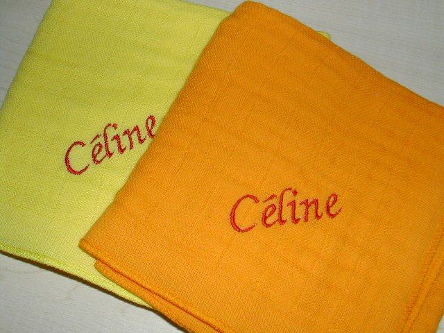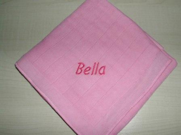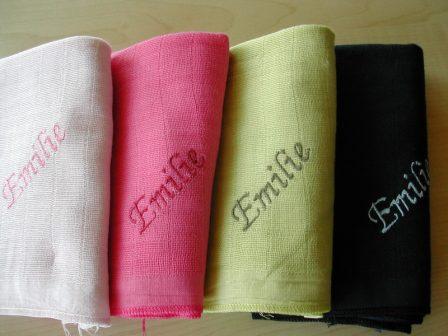 Garnfarbe ist soweit möglich ton-in-ton ( hell auf dunkel oder umgekehrt ) gehalten. Die Schrift wählen wir passend jeweils je nach Länge des Namens.